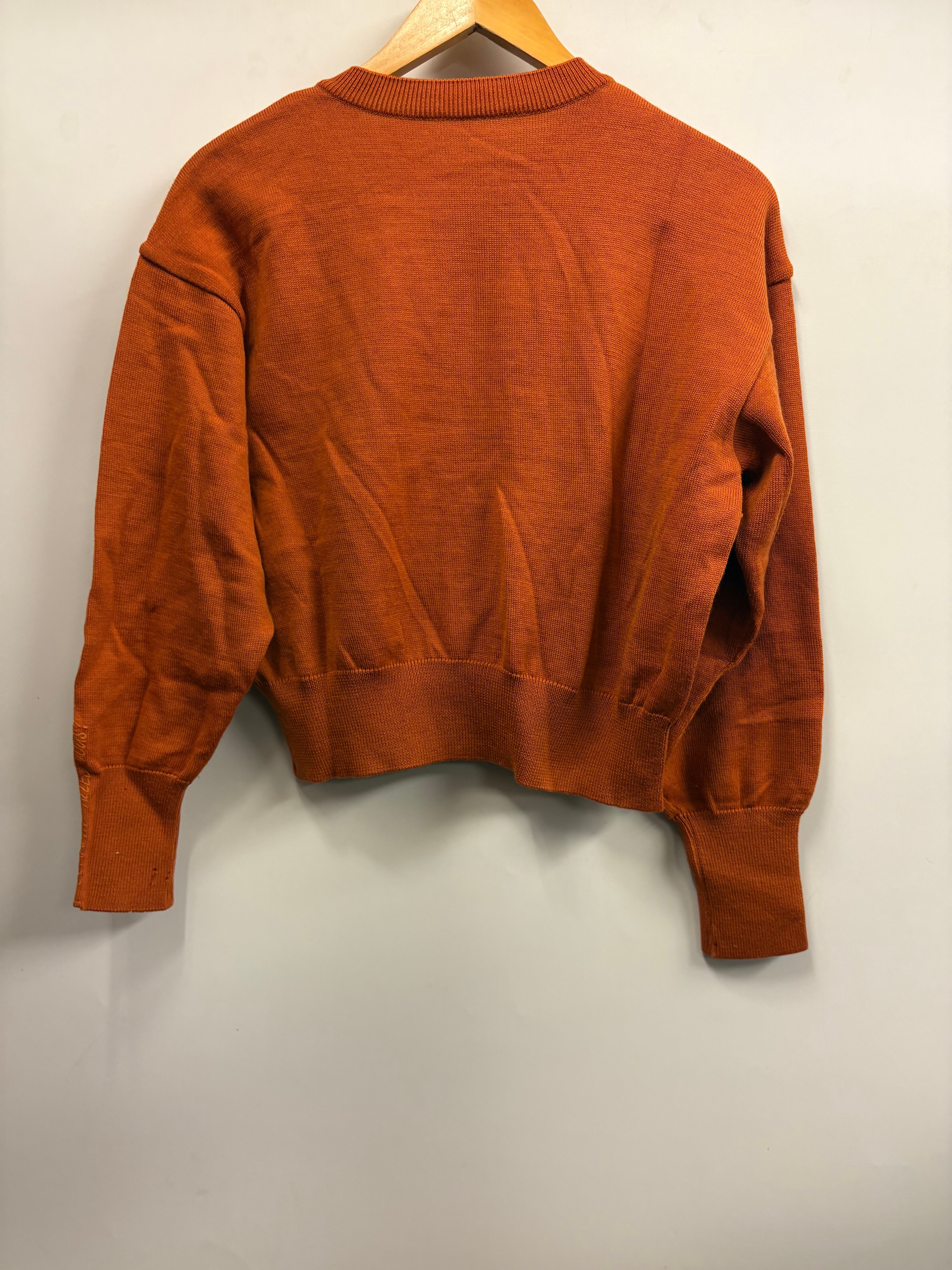 あたたかみのあるオレンジ〜テラコッタ系カラーのニットカーディガン。