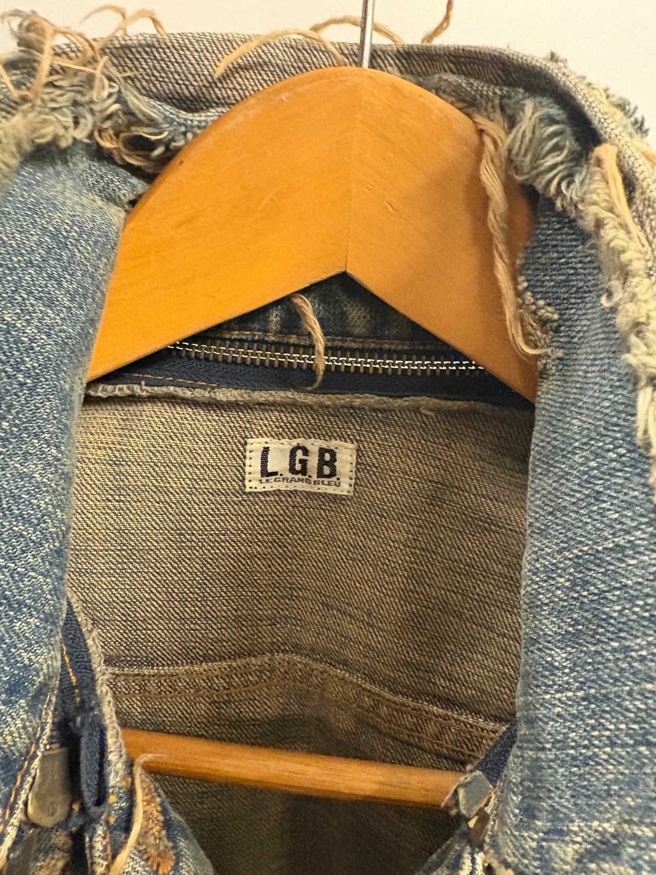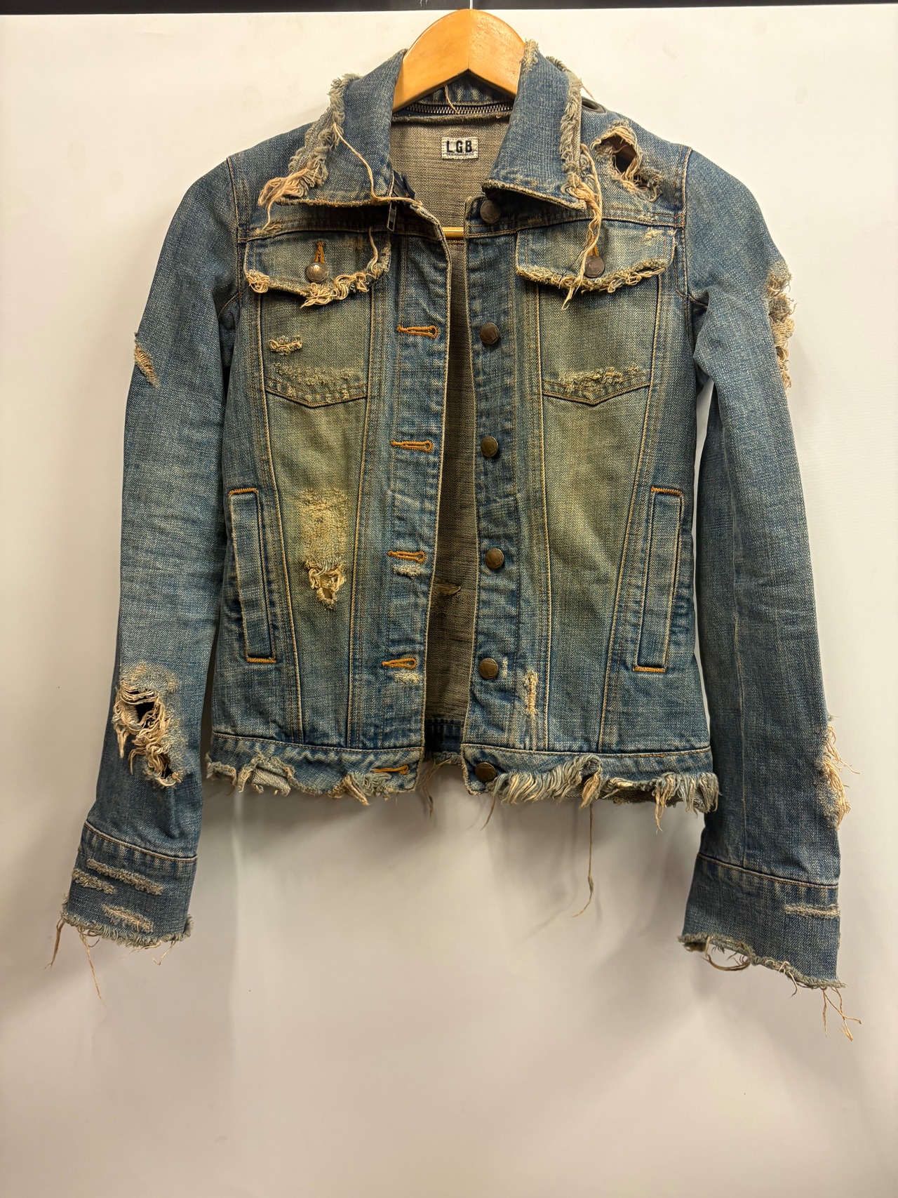 L.G.B.らしいエッジの効いたデザインが際立つ、ダメージデニムジャケット。