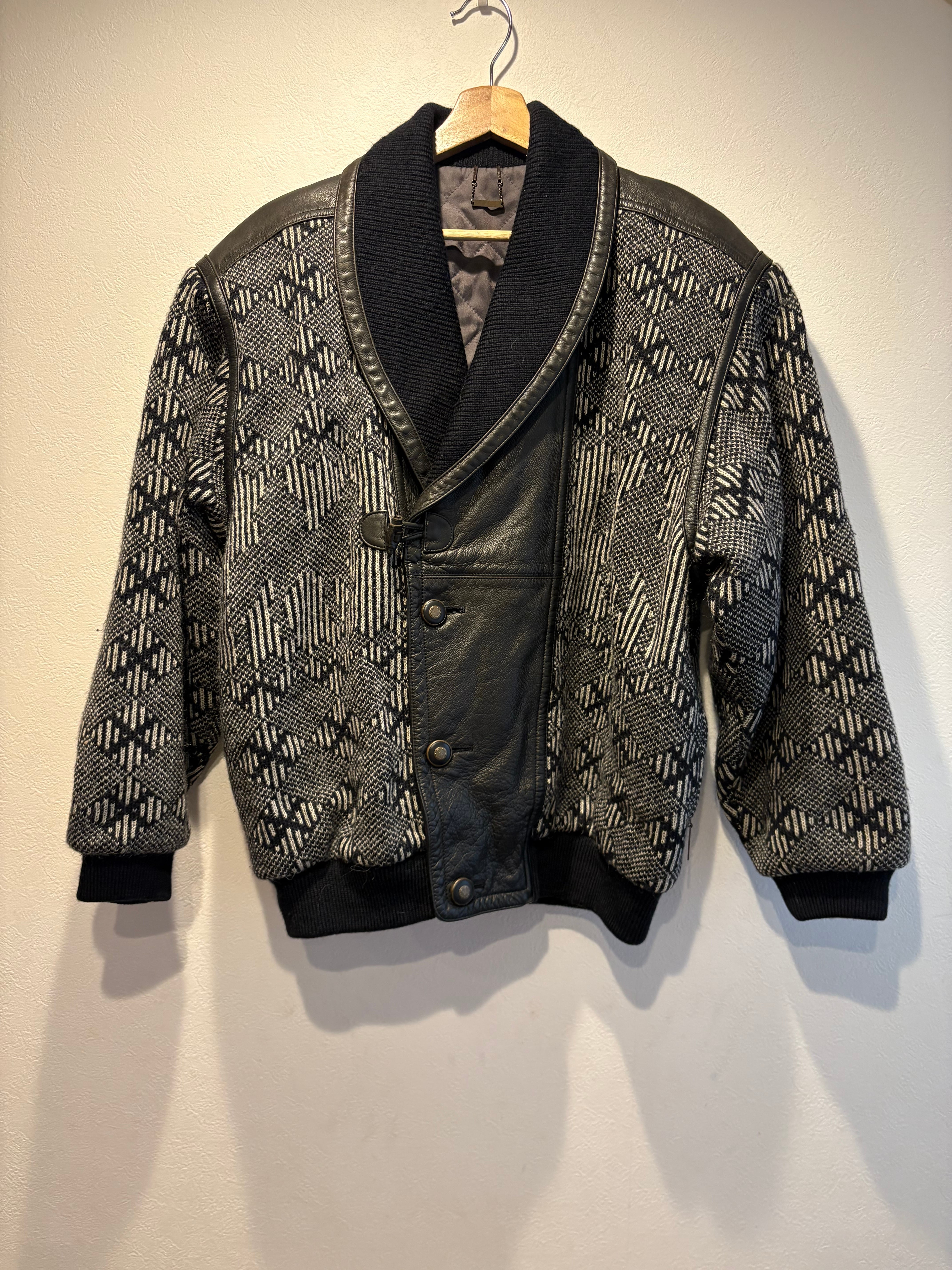 90’s LANCEL PARIS レザー×ニット 高級ハイブリッドブルゾン 定価30万 L
