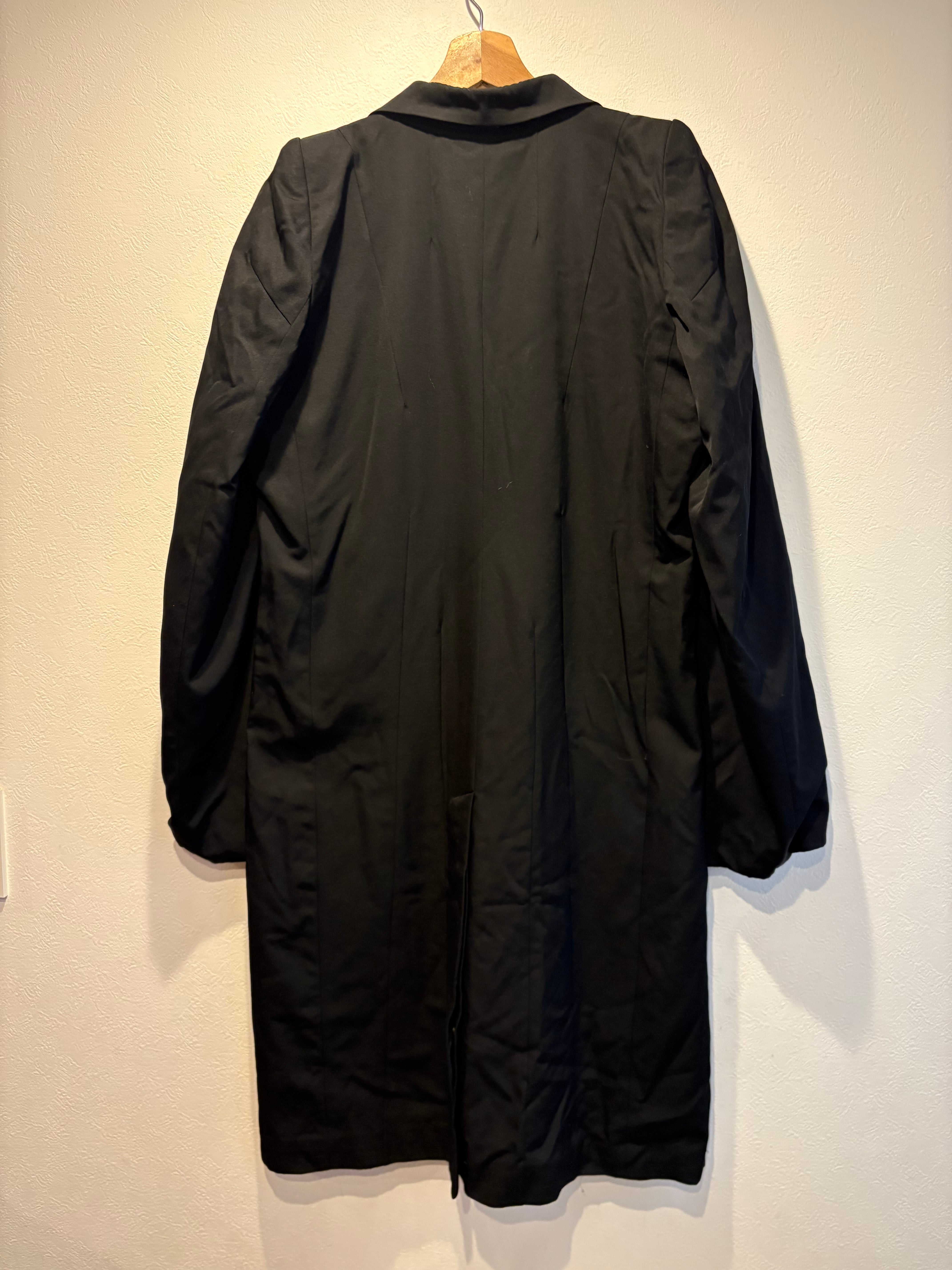 無駄を削ぎ落としたストイックなシルエットが特徴で、ブランドらしい直線的なラインが非常に美しい一着です。